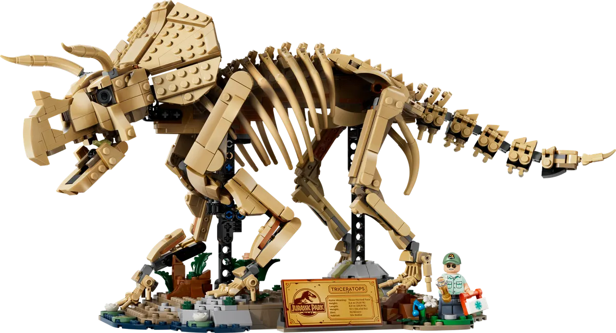 The build recreates authentic fossil details with careful attention to paleontological accuracy. An information plaque accompanies the skeleton, whilst hidden Easter eggs throughout the model reward close examination. The set includes a Dr. Gerry Harding minifigure, connecting to the broader Jurassic World narrative.